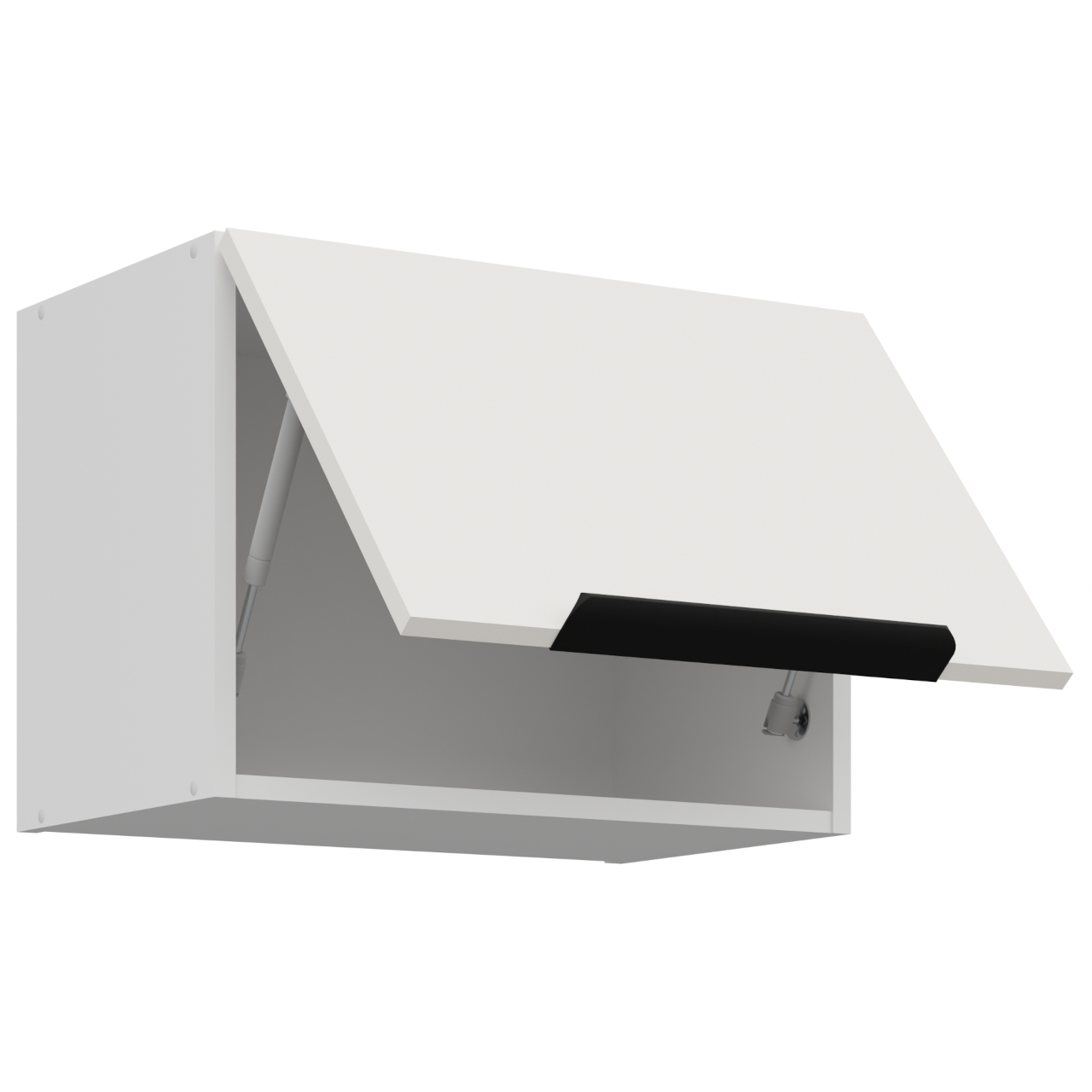 Wnętrze szafki w kolorze białym. Otwory na uchwyt wiercone nieprzelotowo. |